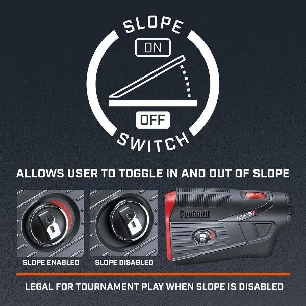 Slope-Switch Technology lets the golfer easily switch the Tour V5 Shift in and out of Slope mode. Tour V5 Shift is legal during tournament play when Slope is disabled.